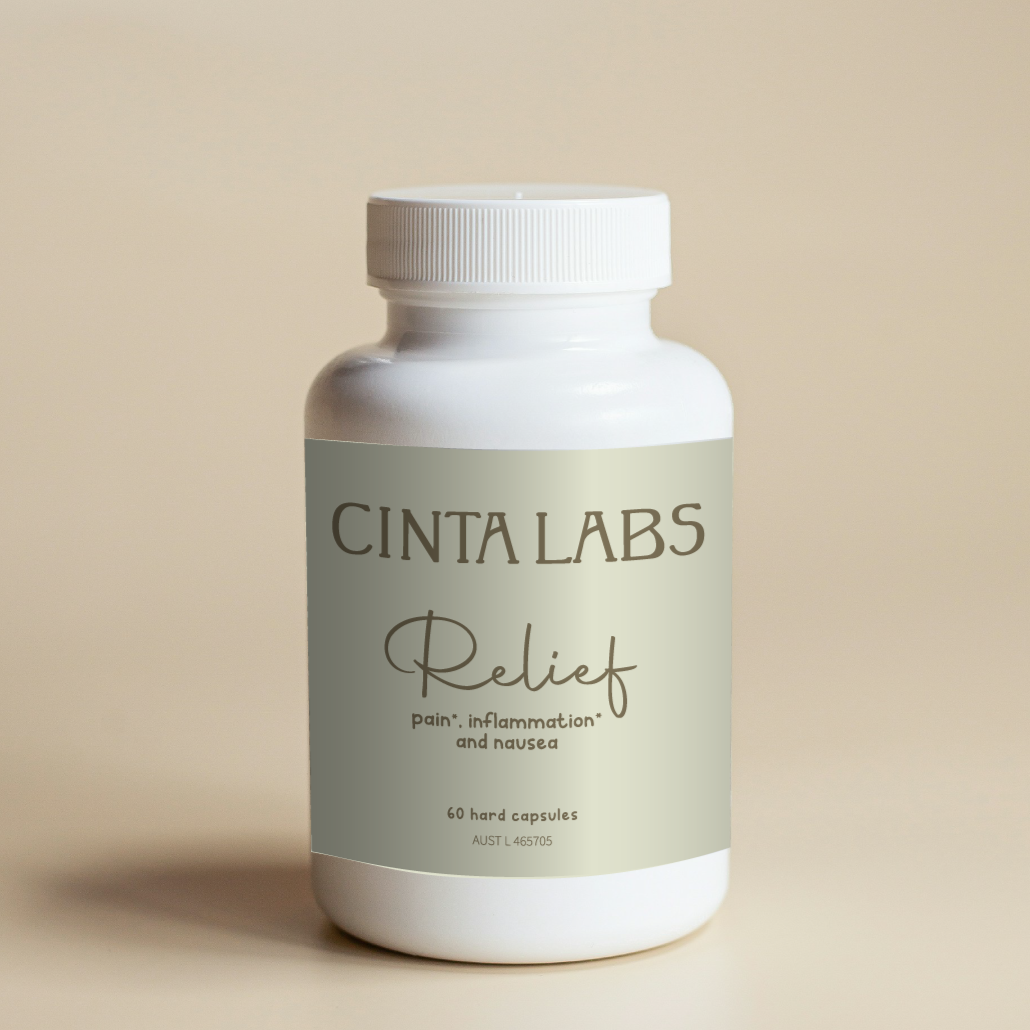 Relief is a nurse and naturopath-formulated capsule that blends natural ingredients traditionally used in Western and Chinese herbal medicine to relieve menstrual pain (dysmenorrhoea), calm cramping, ease digestive discomfort and nausea, reduce hot flushes, ease inflammation, relieve mild anxiety, support a healthy menstrual cycle and support healthy circulation and antioxidant protection.